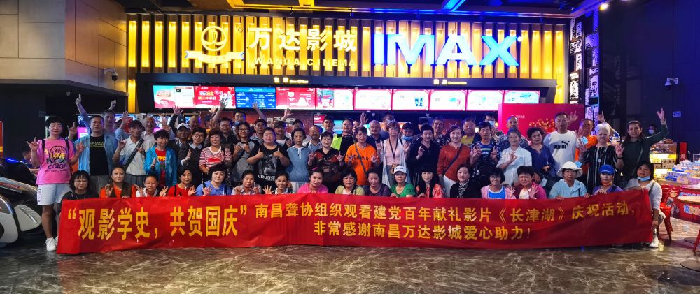 上午8点半,南昌聋协组织60多名聋人朋友在解放东路的青山湖区万达影城参加“观影学史,共贺国庆”——建党百年献礼影片《长津湖》公益观影活动,庆祝建国72周年,并接受党史教育主题的洗礼。