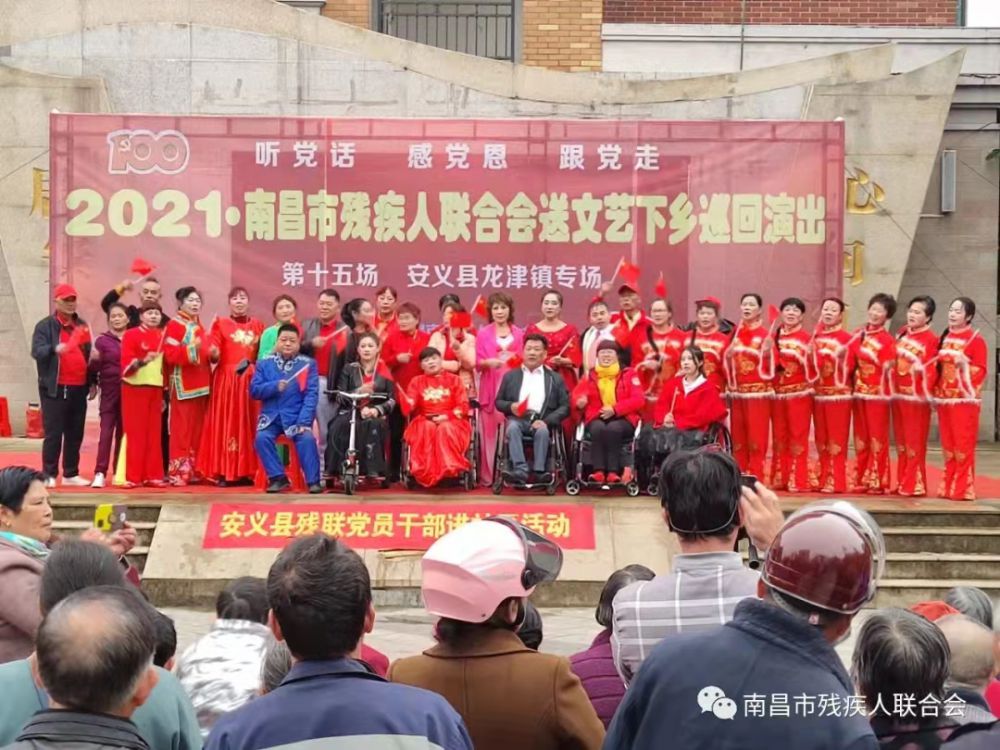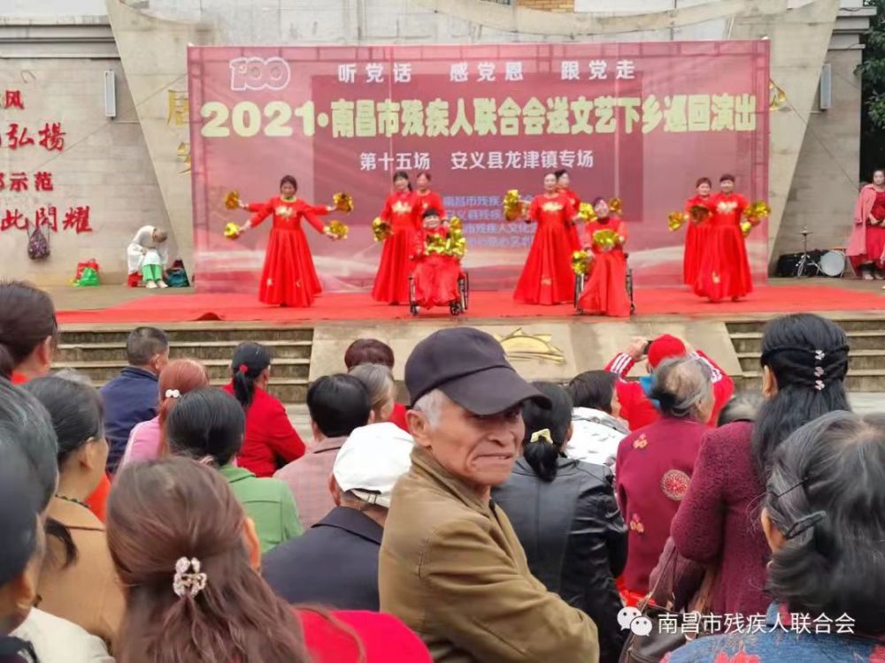 10月18日上午,市残联送文艺下基层巡演活动走进了安义县龙津镇,在龙津镇阳梅头广场开展了第十五场“听党话、感党恩、跟党走”的巡回演出活动。
