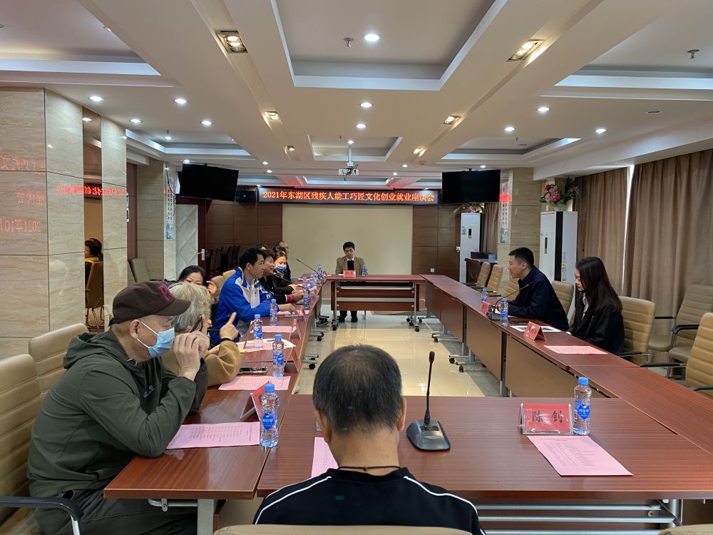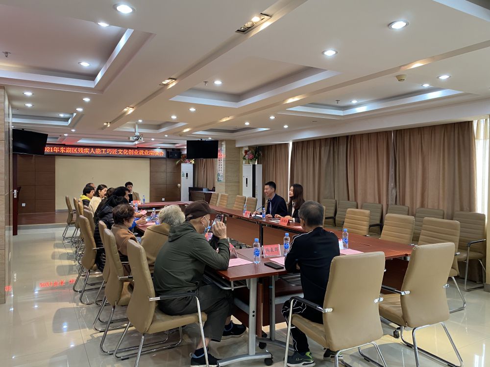 为进一步促进残疾人文化就业创业工作,帮助残疾人发挥一技之长,更好地融入社会,10月26日上午,东湖区残联在残疾人之家举办能工巧匠文化创业就业座谈会,区残联理事长黄河主持会议,区残联相关股室负责人和各类就业创业残疾人代表参加会议。