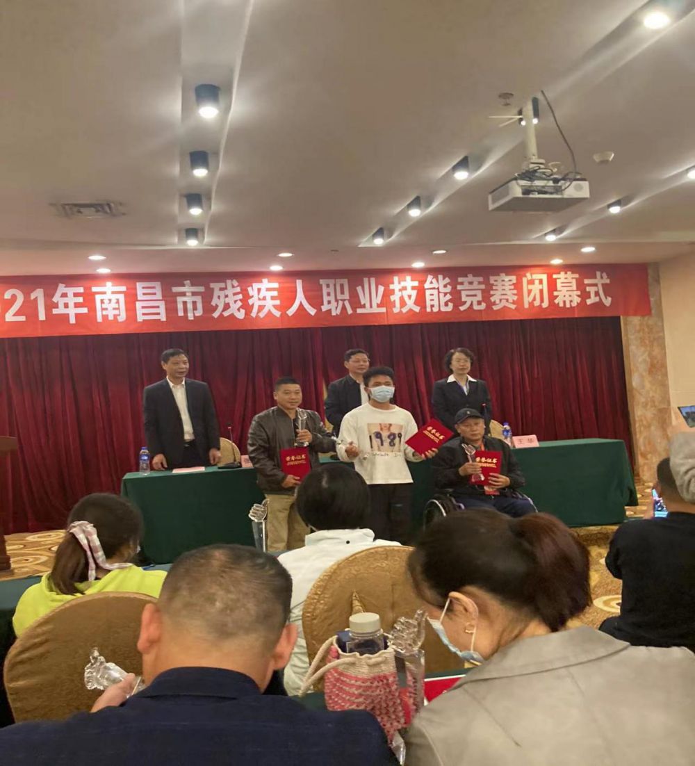 南昌市2021年残疾人职业技能竞赛由2021年10月28日至29日在新吉花园酒店举行,本次大赛共分为(一)瓷板画;(二)计算机操作员;(三)手机维修;(四)珠绣四个项目吸引109名残友参赛,本次高新区社发局组织6名选手参赛,其中2名选手参赛计算机操作员项目,4名选手参赛手机维修项目。我区6名残友赛出风格、赛出水平,其中在手机维修竞赛项目昌东镇赵龙华、麻丘镇杨志威分别荣获一等奖和三等奖。高新区残友不辱使命的获得这次荣誉。好样的!