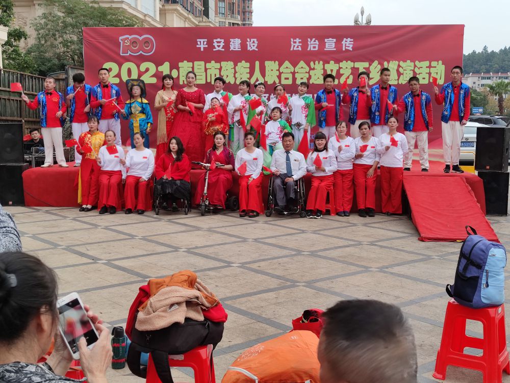 10月26日下午,2021年南昌市残联送文艺下乡巡演活动走进经开区蛟桥镇枫联社区,演出节目形式多样,多方面展示了我市残疾人的文化风采,活动现场吸引附近数百名居民驻足观看。