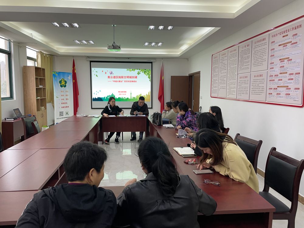 10月20号下午午,区残联专线召开了文明城创建“环境大整治”百日攻坚推进会,各街道、镇、集聚区理事长参加。
