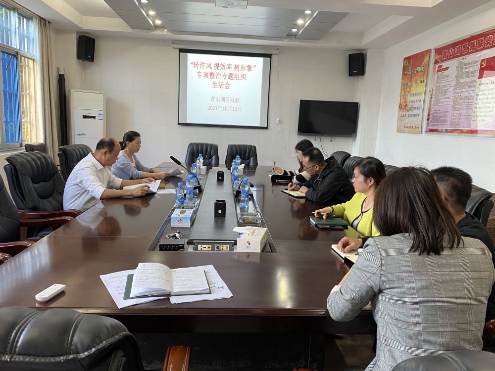 根据《关于在全市机关基层党组织中召开“转作风 提效率 树形象”专项整治专题组织生活会的通知》(洪组通[2021]86号)精神。2021年 10月13日下午,区残联党支部全体党员在会议室召开“转作风 提效率 树形象”专项整治专题组织生活会。