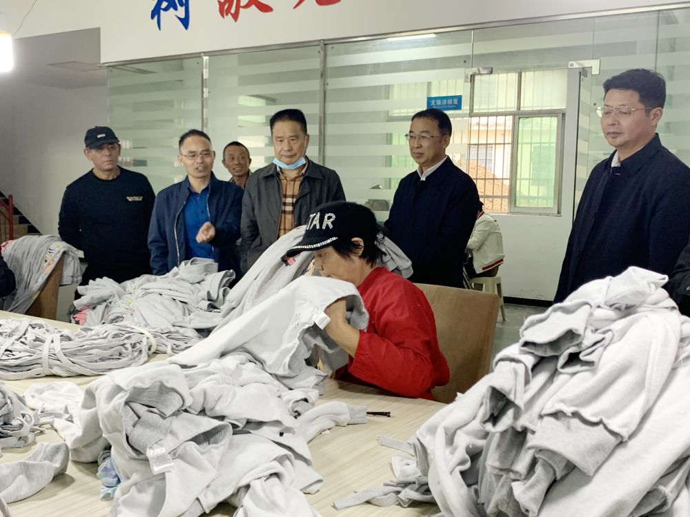在青山湖区京安残疾人托养服务中心,参观了服装车间,了解生产工序和残疾人报酬等,与青山湖区政府领导、残联工作人员就南昌市“十四五”残疾人“十百千万亿”就业创业项目进行交流并征求意见。
