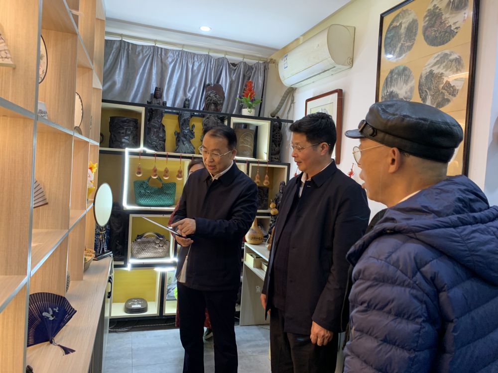余颖一行在西湖区桃苑社区阳光之家,饶有兴趣地参观了残疾人“团扇”展品,向负责人详细了解“团扇”的制作、品种、产量、成本等问题。认真听取了残疾人就业创业碰到的困难及相关意见和建议。