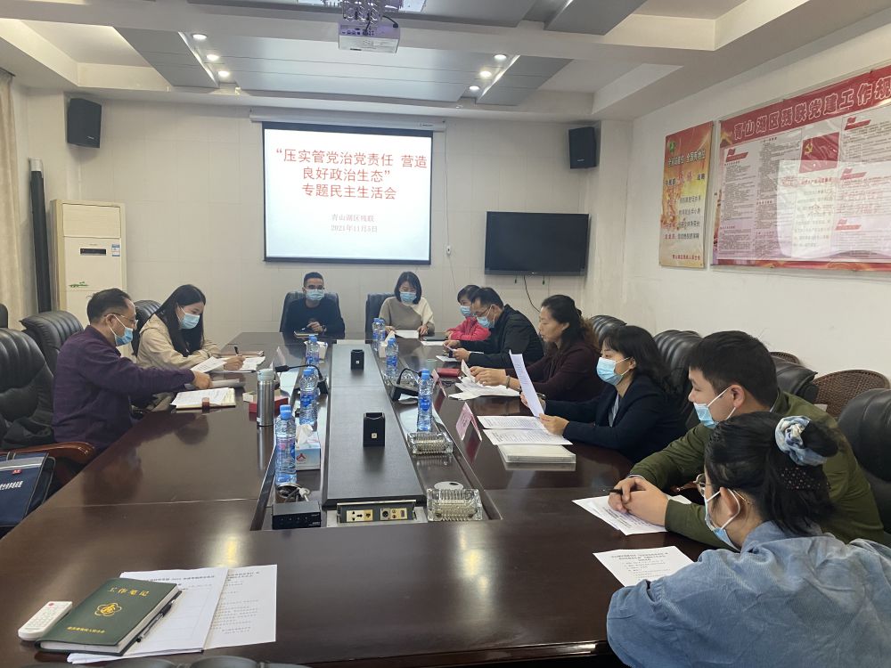 为认真贯彻落实10月16日全市警示教育大会精神,进一步压实管党治党政治责任,进一步推动我会政治生态建设,11月5日上午,区残联召开“压实管党治党责任 营造良好政治生态”专题民主生活会,聚焦“坚定理想信念、站稳人民立场、发扬斗争精神、优化营商环境、破除不良习气、规范权力运行、严守廉洁纪律”七个方面认真剖析问题根源,明确整改措施。会议由李小秀同志主持,区委党史学习教育第五巡回指导组胡香水组长一行到会作指导,我会班子全体成员参加了会议。