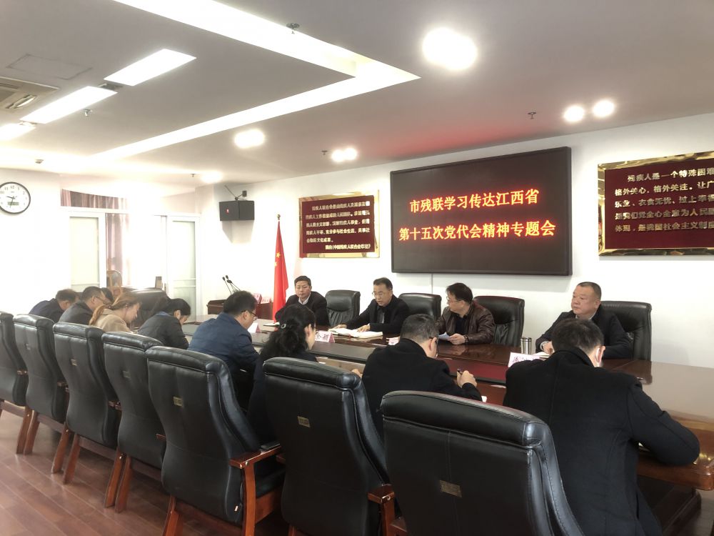 11月30日上午,市残联召开党组(扩大)会,深入学习传达贯彻省第十五次党代会精神及全市领导干部会议精神,党组书记、理事长余颖主持并讲话。