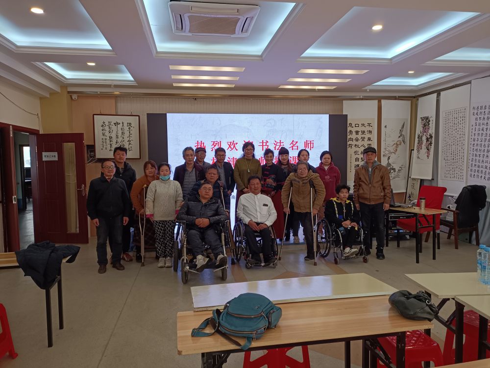 2021年11月26日2时许,由江西省肢残人协会主办,南昌市残疾人书法协会承办,举办了一堂别开生面的书法讲座,讲座在南昌市残疾人文化艺术产业园书法展厅举行。省肢协副主席吴启琳博士出席了讲座,并在残疾人学员前排就坐聆听。讲座主讲老师是中书协会员、江西省书法家协会会员、多次在全国书法大赛中获奖的资深女书法家杨津老师。