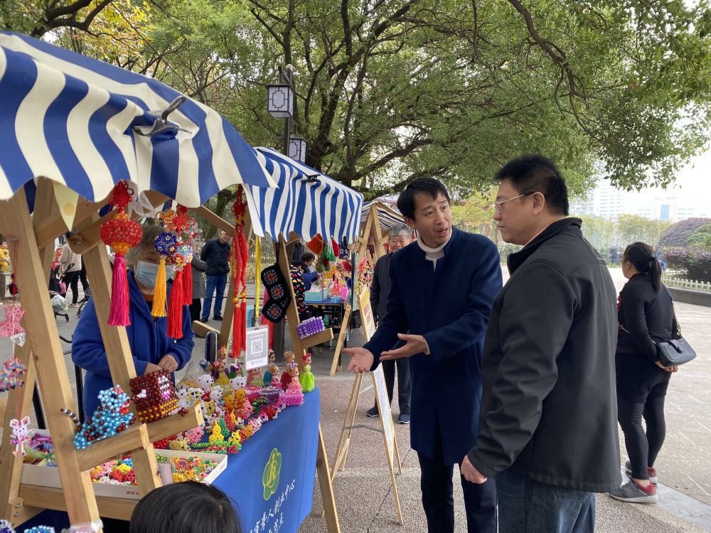 张勇在八一公园实地了解了示范点的运营、发展及创业者的收入等情况,并就手工艺品怎样更好地与残疾人就业创业有效结合以及产品销路问题进行了深入交流探讨,鼓励聋人朋友自强自立,带动更多残友加入创业队伍中来,通过自己勤劳的双手过上美好生活。