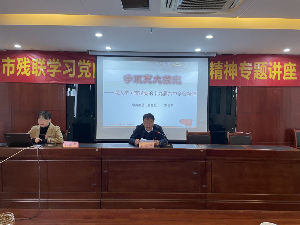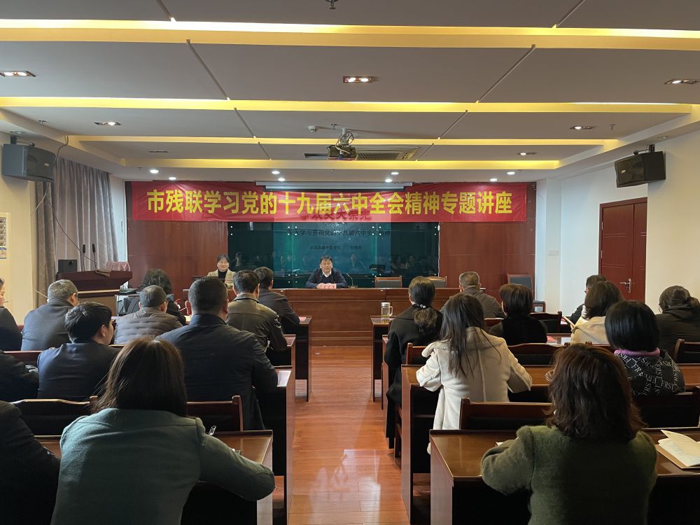 为深入学习领会党的十九届六中全会精神的重大意义,掀起学习宣传贯彻全会精神的热潮,开展好市残联“双周大讲堂”活动。12月8日上午,市残联举办学习党的十九届六中全会精神专题讲座,市残联副理事长吴卫平、林善岳,四级调研员徐训波、周红华,市残联全体党员、预备党员、入党积极分子,各科室负责人,科级及以上干部近40余人参加了讲座。