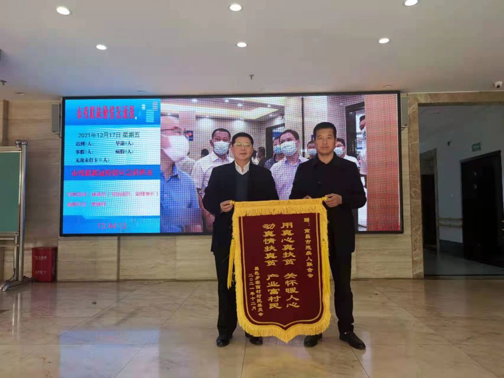 “感谢市残联多年来的关心和帮助,让我们村产业兴旺、环境优美、生活更有奔头,谢谢你们!”12月17日下午,新建区昌邑乡窑西村村支部书记陶小林将一面红底金字的锦旗送至市残联副理事长林善岳手中。锦旗上面书写着“用真心真扶贫,关怀暖人心;动真情扶真贫,产业富村民”的字样,对市残联在精准扶贫工作中给予窑西村的大力支持和真情帮扶表示由衷的肯定和诚挚的谢意。