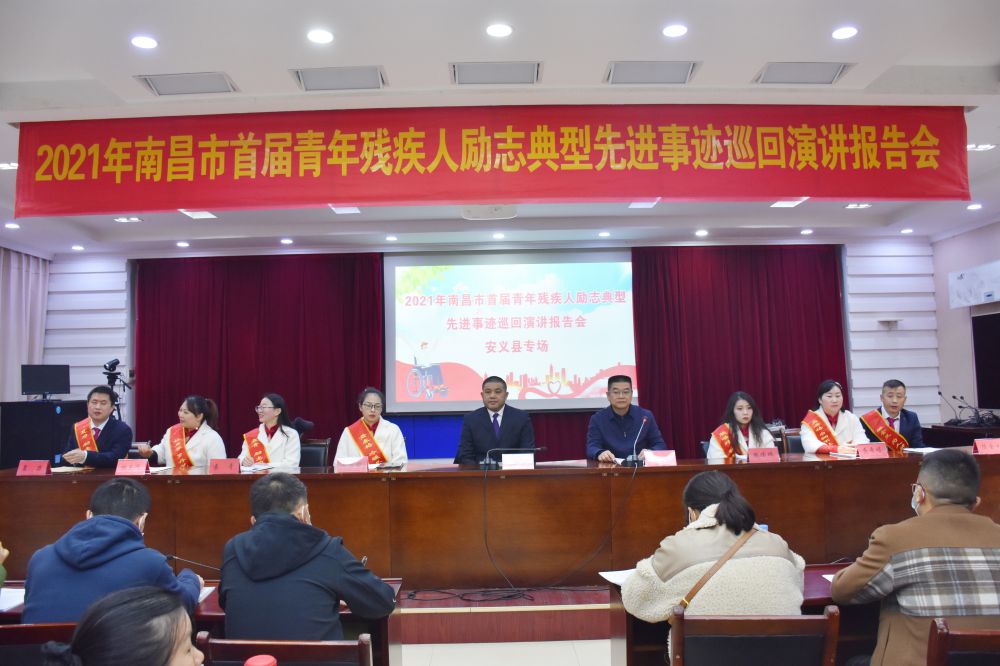 12月21日上午,南昌市首届青年残疾人励志典型报告会在安义县激情上演。市残联党组书记、理事长余颖,副理事长、报告团团长邓林和带领报告团7位成员出席报告会。
