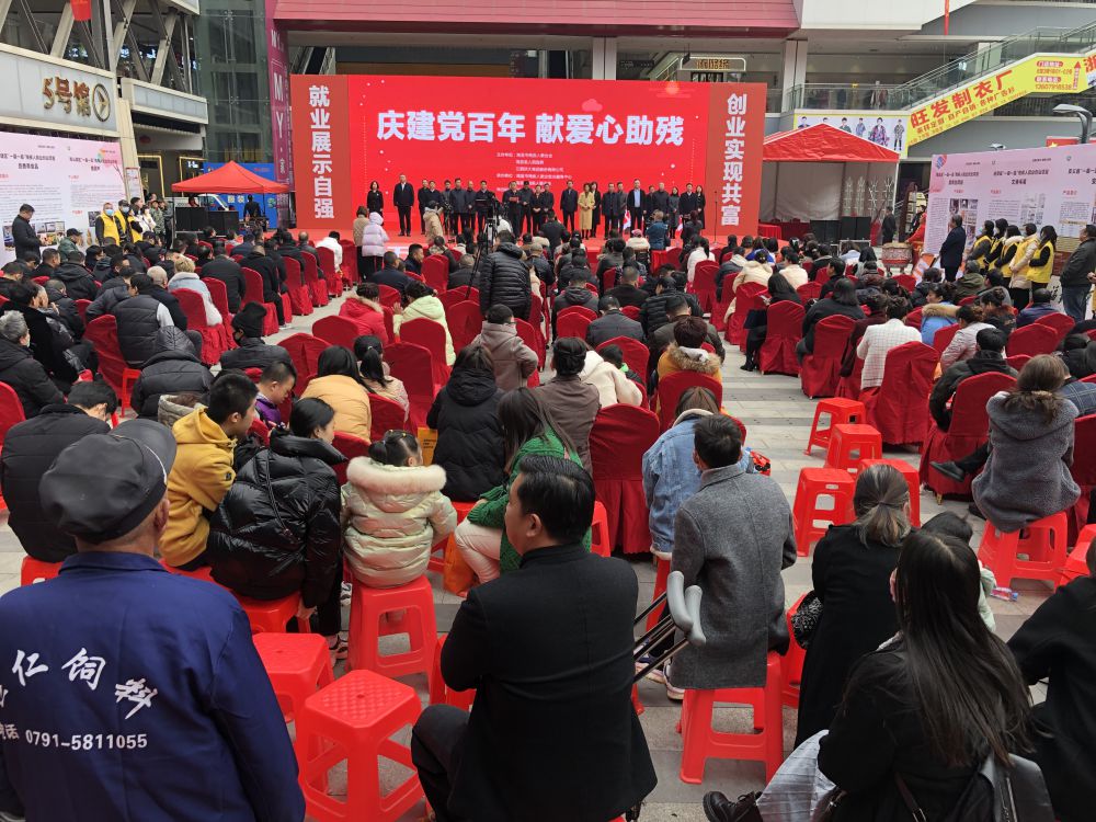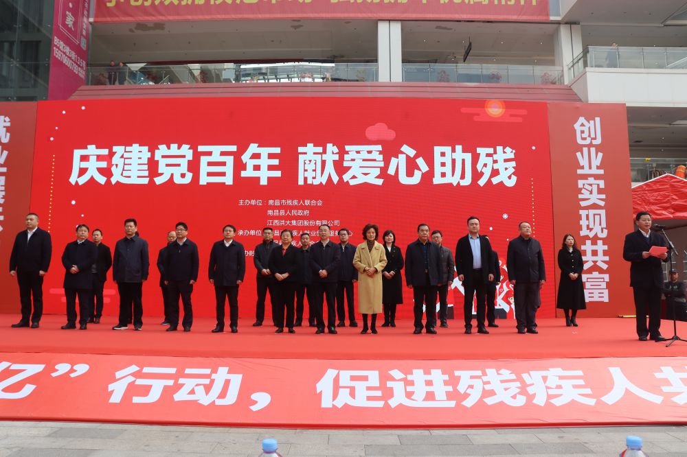 12月20日上午,南昌市残疾人联合会携手南昌县人民政府和江西洪大集团股份有限公司在南昌县新洪城大市场举办“庆建党百年·献爱心助残”南昌市残疾人手工艺品(产品)义卖活动,南昌慈善总会会长雷武江,市残联党组书记、理事长余颖,南昌县人民政府副县长廖淑敏,洪大集团党委书记余小玲,洪大集团总经理陈立群,洪大集团党委副书记王跃军,洪大集团副总经理龚林,洪大集团行政部主任桂佳伦,市残联副理事长吴卫平、邓林和,市残联四级调研员徐训波、周红华参加活动。市残联副理事长林善岳主持活动启动仪式。