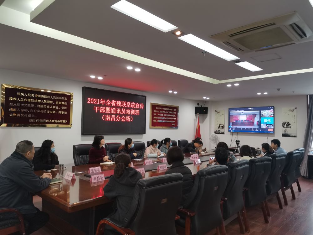 12月22日,市残联副理事长邓林和率全市各县区残联分管领导、宣传股长、通讯员和市残联宣文科相关人员在五楼会议室通过钉钉平台参加2021年全省残联系统宣传干部暨通讯员线上培训班。