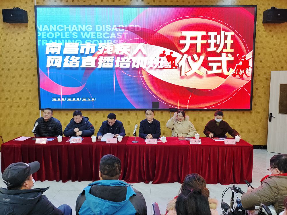 为全面展示我市残疾人积极向上、自强不息的良好风貌,进一步提升我市残疾人文化就业创业和网络就业创业水平,帮助更多残疾人实现共同富裕,12月27日上午,南昌市残疾人网络直播培训班在青山湖区华溯艺校正式开班,省残联党组成员、副理事长兰昊,市残联党组书记、理事长余颖出席开班仪式并讲话。市残联副理事长邓林和主持开班式。