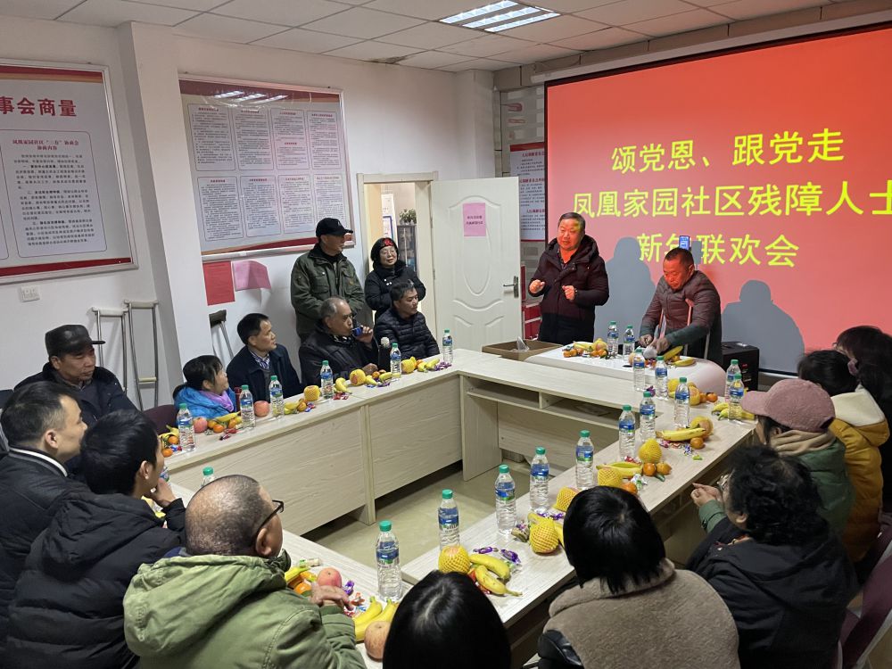 为更好地关心和帮助辖区内的残障人士,聆听残障人士的心声,凤凰家园社区开展“颂党恩、跟党走残障人士迎新年”联欢会。 社区残障人士及其家属、社区工作人员20余人参加了联欢会。大家欢聚一堂,共迎元旦新年的到来。