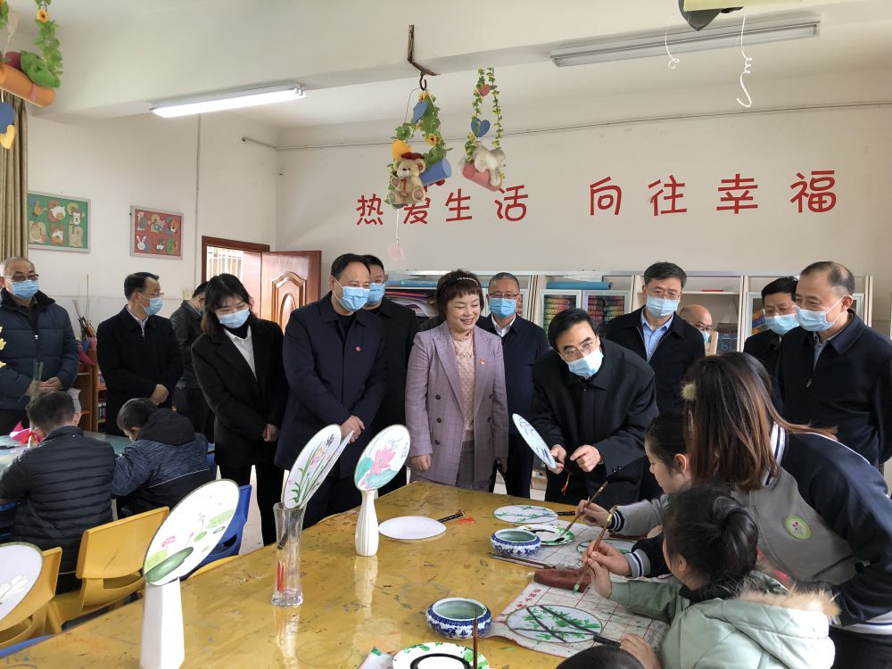 1月12日下午,中国残联党组成员、副主席、副理事长程凯到南昌市培智学校调研残疾人特殊教育工作。省残联党组书记、理事长何剑锋,中国残联教育就业部副主任、一级巡视员解宏德,省残联副理事长邹凯、二级巡视员贾亚明、教就处处长赖建宁,市残联党组书记、理事长余颖参加调研。