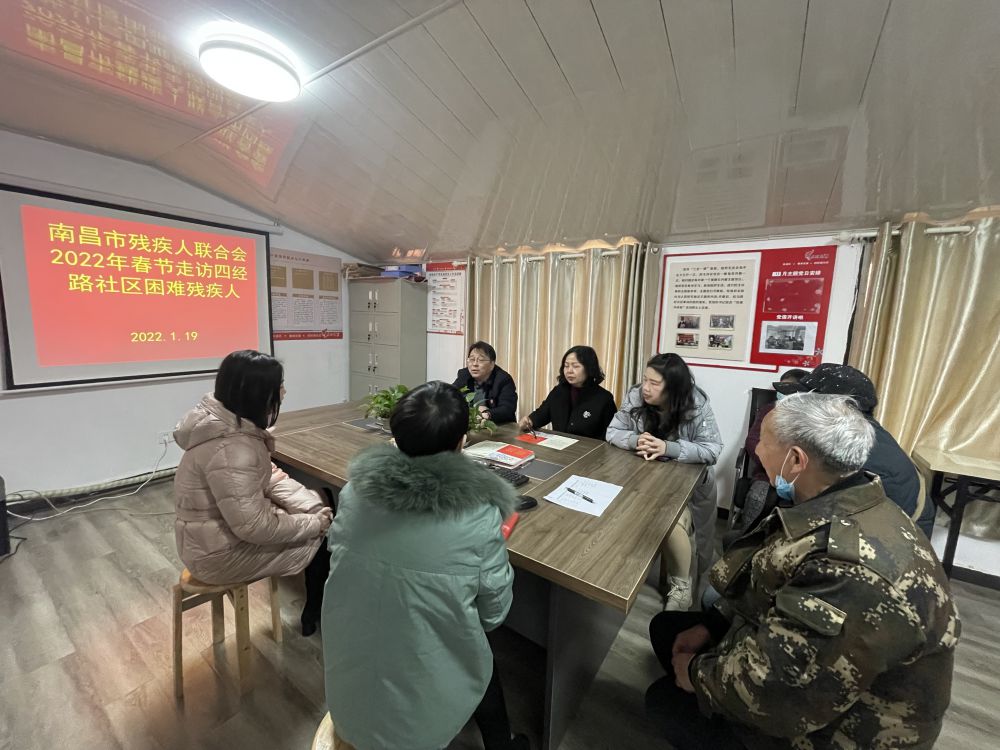 在新春佳节来临之际,为帮助困难残疾人度过一个温馨祥和的节日,2022年1月19日上午,市残联党组成员、副理事长吴卫平、四级调研员周红华带领机关支部党员来到联系点的四经路社区,开展春节前夕走访慰问困难残疾人活动。