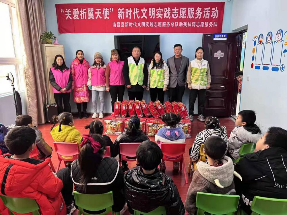 爱心送去温暖,温暖传递希望。为深入落实县文明办关于在2021年元旦、春节期间开展志愿服务关爱行动的部署要求,进一步弘扬奉献、友爱、互助、进步的志愿精神,倡导扶残助残的良好社会风尚,1月19日,南昌县残联副理事长罗建平、周新萍组织志愿者们来到南昌县天韵残疾人康复教育训练中心开展“关爱折翼天使”新时代文明实践志愿服务活动。