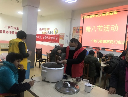1月10日,广润门街道惠民门社区联合居家养老中心开展了“浓情腊八节,温暖邻里情”的送腊八粥的活动。