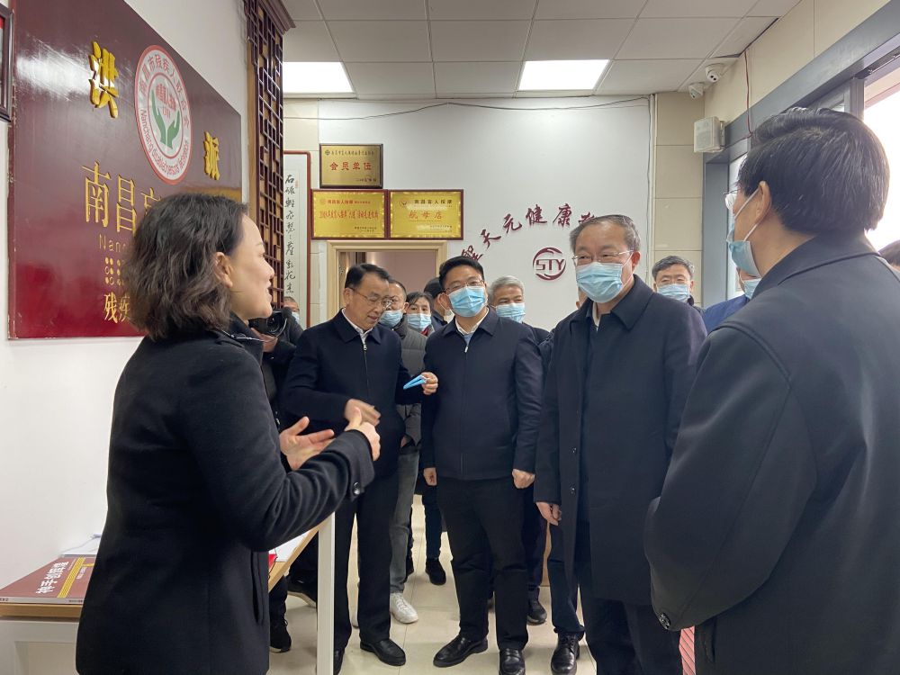 1月12日上午9:00,人社部副部长俞家栋、中残联副主席、副理事长程凯一行来到位于西湖区桃源街道金源社区的聖天元盲人按摩院进行实地调研。江西省人社厅党组书记、厅长钟志生,江西省残联党组书记、理事长何剑锋,南昌市残联党组书记、理事长余颖,西湖区区长陶亿国等领导陪同。