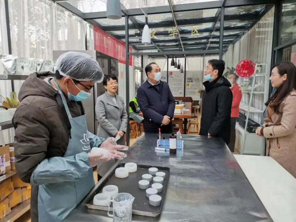 在机构主任洪丽娟的引领下,熊印根一行参观了中心各功能室、庇护性就业基地的手工皂坊、花卉绿植坊等,从日常服务、再到康复训练、技能培训等逐项询问,进行细致了解。重点就精神残疾及智力残疾人在中心社区康复、学习生活情况、以及机构的基础设施、运营管理、辅助性就业等情况开展详细地调研。