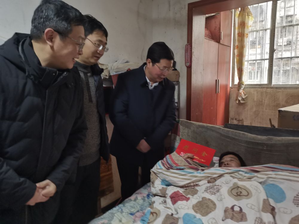 1月18日下午,市残联副理事长林善岳来我辖区对特困残疾人进行春节前走访慰问,区残联理事长万剑斌、副理事长胡翔陪同。