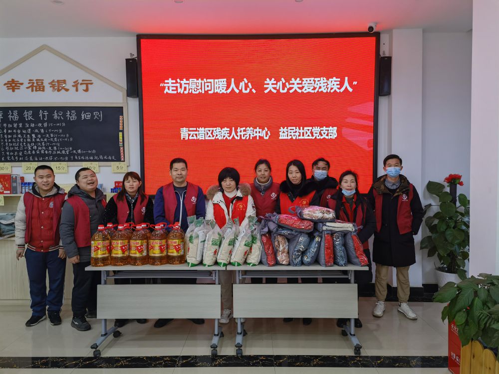 在春节来临之际,为切实把党的关怀落到实处,让困难残疾人过一个幸福、欢乐、祥和的春节,1月28日,青云谱区残疾人托养中心到青云谱区益民社区,看望慰问困难残疾人并给他们送上大米、食用油等生活物质和新春的祝福,倾听他们的心声,让他们感受到节日的氛围和党的温暖。