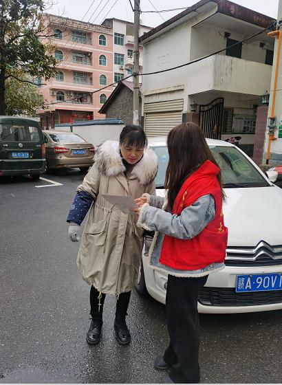 2022年2月8日安义县残联志愿者到小区开展文明志愿服务活动。
