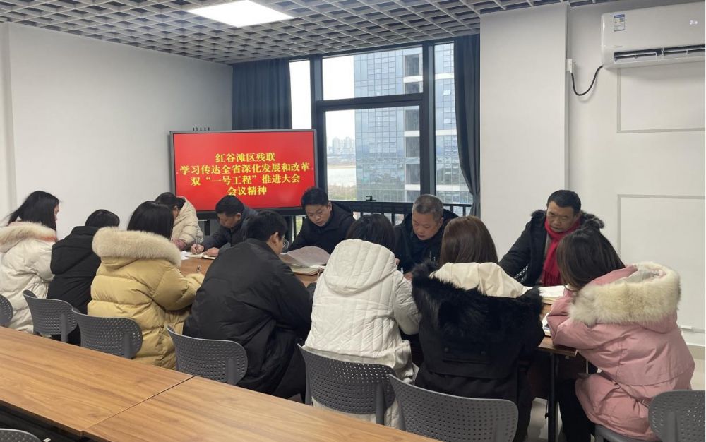 2月7号下午红谷滩区残联召开全体干部职工大会,迅速学习传达全省深化发展和改革双“一号工程”推进大会会议精神和省委常委、市委书记李红军讲话精神,并就如何抓好落实进行了安排部署,区残联全体干部职工参加会议。