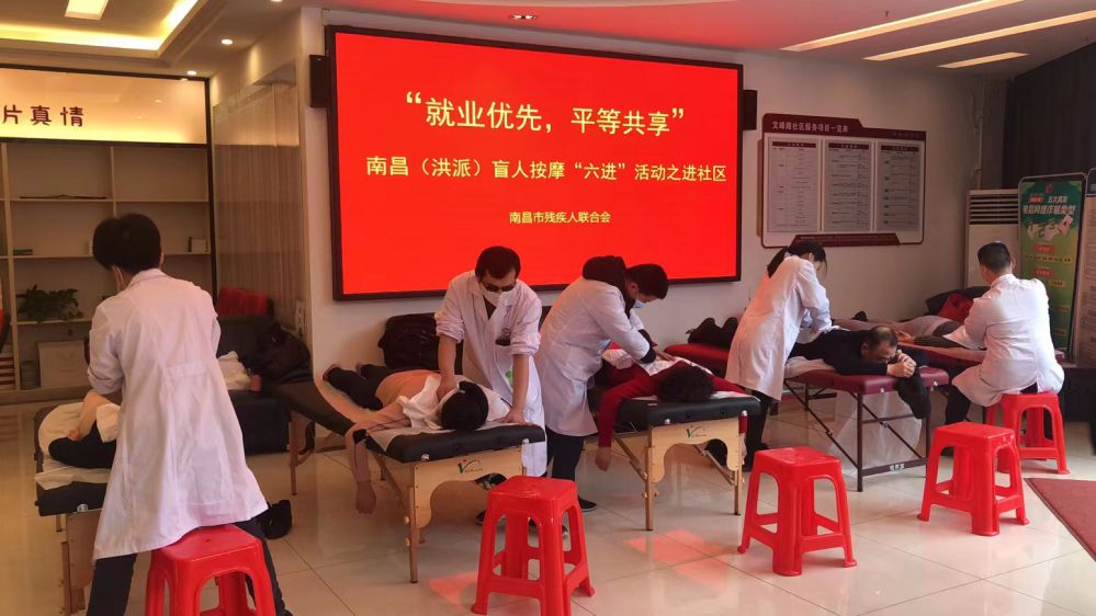 为提高社会各界对残疾人就业能力和就业潜力的认知,营造促进残疾人就业的良好氛围,2月15日上午,市残联就创中心在新建区文峰路社区开展2022年首场南昌(洪派)盲人按摩“六进”志愿服务活动,为社区居民提供免费推拿按摩健康服务。