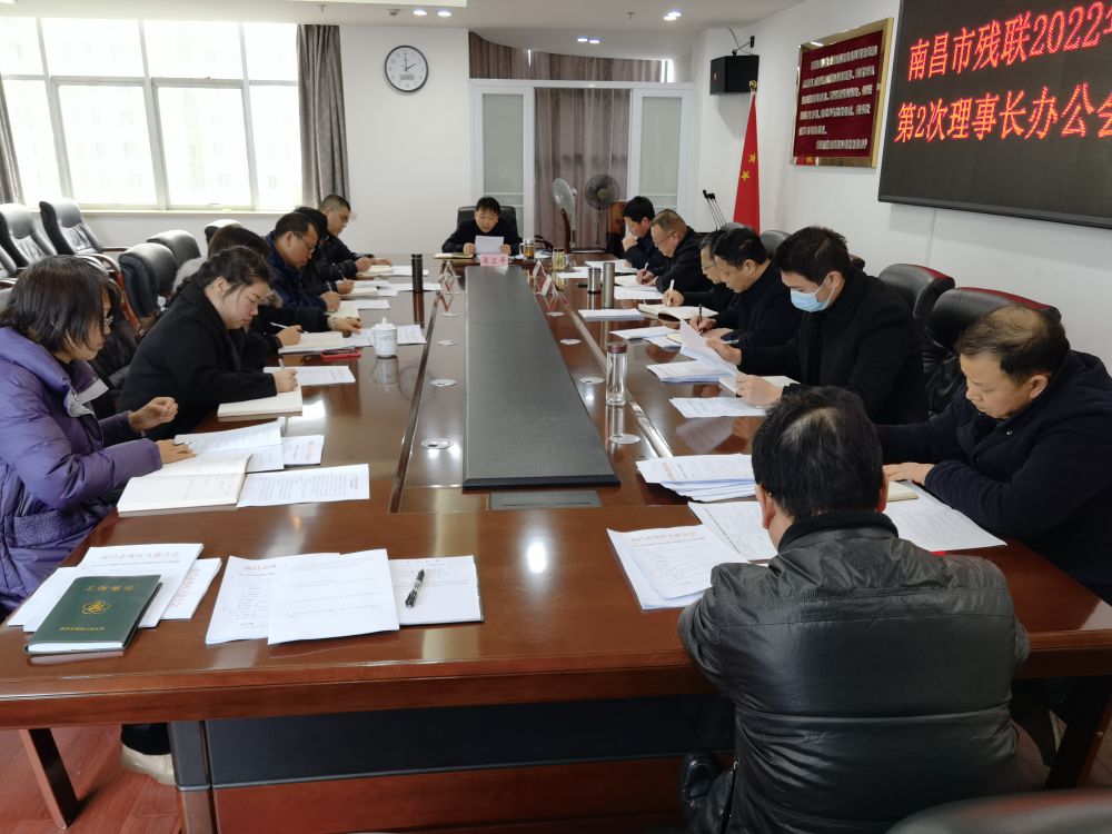 2月14日下午,南昌市残联在五楼会议室召开2022年第2次理事长办公会,党组成员、副理事长吴卫平主持会议。