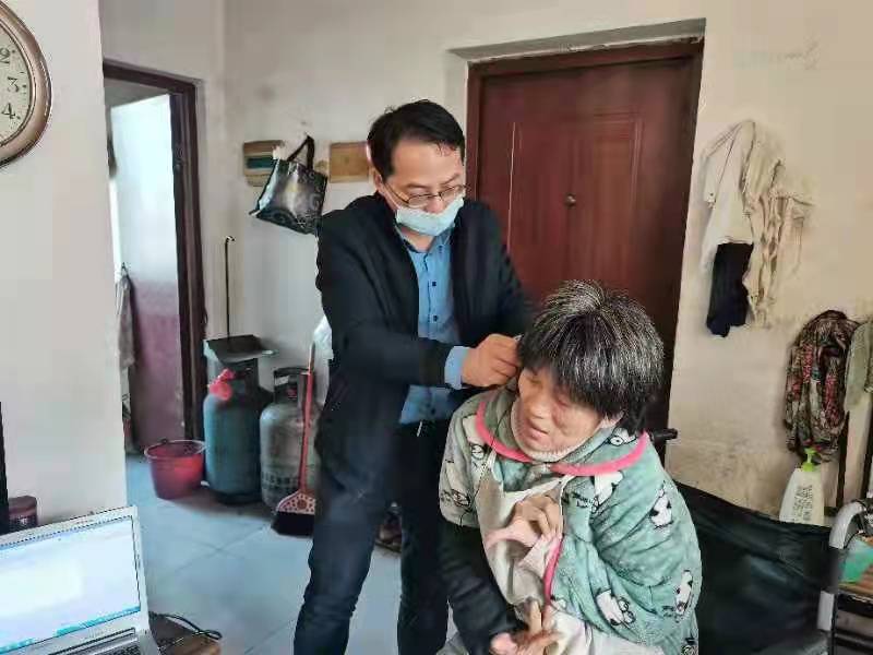 家住站前街办文明北社区低保户赵烨,今年54岁,听力、肢体一级属双重残疾人,在2岁时突发高烧,导致终生残疾,丧失劳动能力,因肢体不便且聋哑无法交流,常年不能出门。社会事务办残联工作人员主动联系其家属,根据她个人身体情况和实际需求,决定开展上门适配助听器活动。