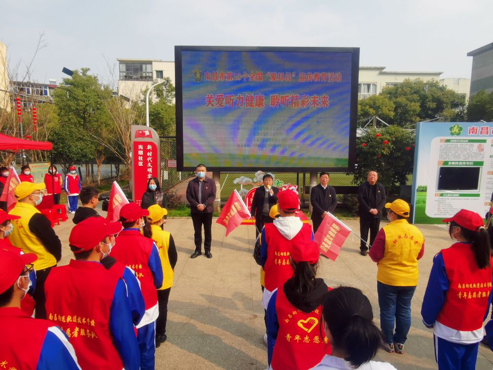 当日,为拓宽服务形式,延伸服务内容,南昌市残疾人康复中心组织志愿者组成志愿服务小分队为社区居民开展康复服务。在出发前,南昌市残联会领导为志愿小分队进行了简单的授旗仪式。市残联党组成员、副理事长吴卫平强调:今年“爱耳日”的宣传重点是贯彻落实《残疾预防和残疾人康复条例》和《国家残疾预防行动计划(2021-2025年)》,宣传听力残疾预防的重要性与必要性。服务队要以“爱耳日”活动为契机,为社区群众提供贴心的上门服务,要强化志愿服务的意识,争做忠诚干净担当的“四有”干部;要传递扶残助残的理念,把党和政府及社会各界对残疾人群体关爱及时传递到残友身边;要努力树立良好的形象,让群众感受到我们的真心和真情。同时要弘扬“脚上有土,心中有谱”的实干精神,以“自信、发奋、齐心”的精神风貌,以实际行动为残疾群众做好服务,推进我市残疾人康复工作高质量发展。