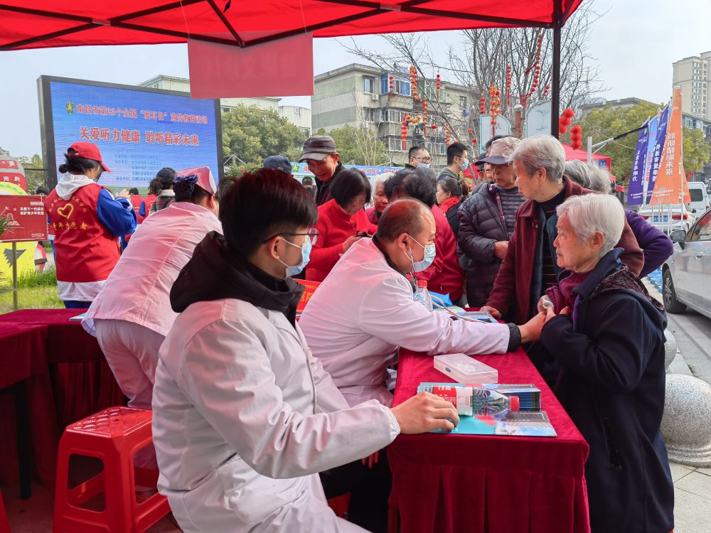 本次爱耳日的活动主题为:关爱听力健康,聆听精彩未来。在光明社区,南昌市残疾人康复中心通过设置宣传展板、悬挂横幅、设立道旗等多种形式营造浓厚的宣传氛围,并发放了《残疾预防和残疾人康复条例》和《国家残疾预防行动计划》(2021-2025年)宣传折页及残疾预防知识宣传折页和康复知识宣传手册等资料,为市民提供政策解答和康复服务指导。来自江西省儿童医院、江西省中医院、南昌安定医院、南昌康宁医院、东湖区仁爱之家智力残疾儿童康复中心、南昌中天医疗设备有限公司、南昌市美听力科技有限公司、奥地利美迪医疗电子仪器公司等多家医院和单位为群众提供了健康义诊、耳朵检查、听力检测、助听器验配、知识讲堂、量血压、测血糖等服务。此外南昌市残疾人艺术爱好者在现场表演了乐器、快板等节目,活跃了节日气氛。