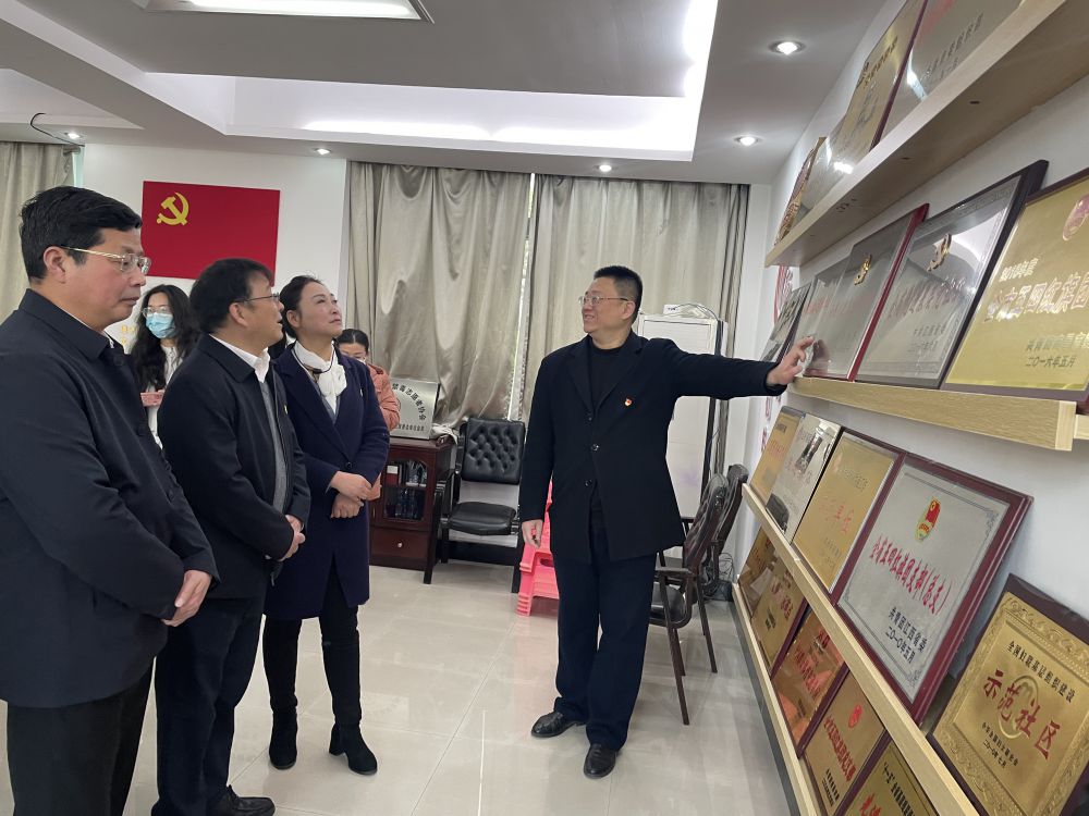 首先,一行人在社区党委书记刘云娟的带领下,参观了光明社区平安园、光明社区党群服务中心,沿路参观了社区党员特色文化长廊,刘云娟向大家详细介绍了社区办公所职能划分,向大家展示了社区为民服务措施和项目。大家纷纷表示光明社区创新的“三环”式党建工作模式有很大的借鉴意义,对基层党建工作的规范化、标准化建设给予了高度评价。