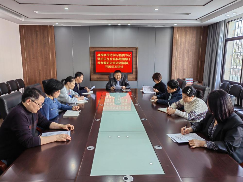 3月11日下午,安义县残联召开党组中心组理论学习会,就县委书记谭伯乐在全县科级领导干部“学习贯彻党的十九届六中全会精神,提高政治判断力、政治领悟力、政治执行力”专题研讨班上的讲话精神,围绕谭书记主题报告《如何做一名善于抓落实的干部》,开展专题学习、研讨交流。