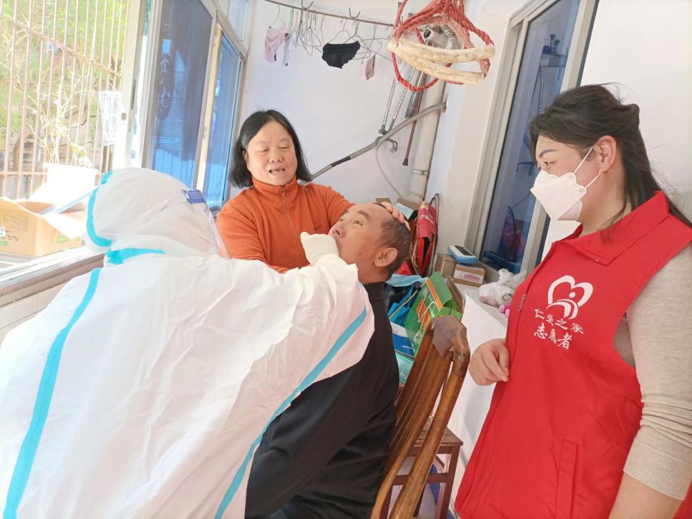 齐心聚力佑健康,坚守“疫”线显初心,抗疫行动,人人有责,仁爱之家志愿者们在行动!南昌市社会面“清零活动”为了确保不漏检一人,东湖区残联根据精神、智力残疾人身体情况,2022年4月20日联合仁爱之家志愿者来到八一桥街道、董家窑街道开展上户协助残疾人核酸采样。
