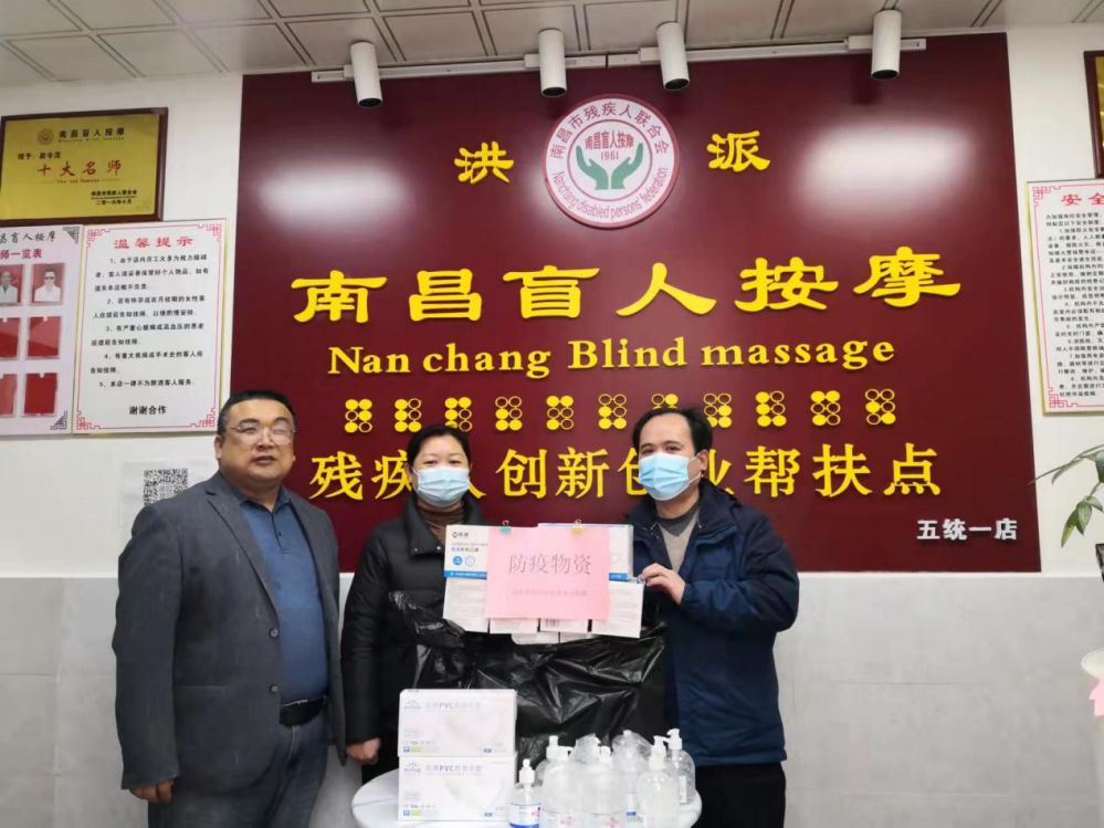 4月1日,湾里社会事务办教就科工作人员为盲人按摩店送去口罩、免洗消毒液等防疫物资。在走访过程中,工作人员认真查看盲人按摩店的实际情况,与盲按机构负责人进行深入交流,询问经营情况,并指导盲人按摩店员工做好相关消毒工作,嘱咐他们要严格按相关部门要求做好疫情防控工作。