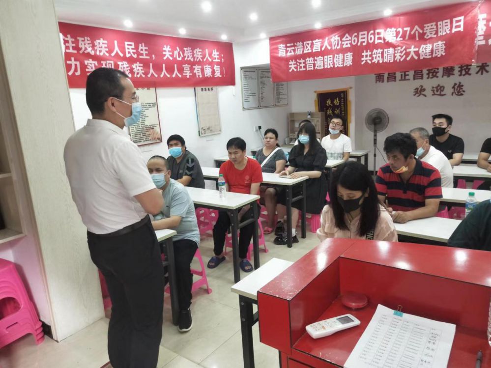 6月6日是第27个次全国“爱眼日”。为增强全社会视力残疾预防意识,进一步推进我区视力预防与康复工作,增强全社会视力残疾预防意识,有效减少、控制视力残疾的发生、发展,有效预防视力残疾,通过中医推拿手法和点穴治疗避免视力残疾的发生,对维护人民群众健康具有重要作用。青云谱区盲人协会开展“爱眼日”宣传教育活动。
