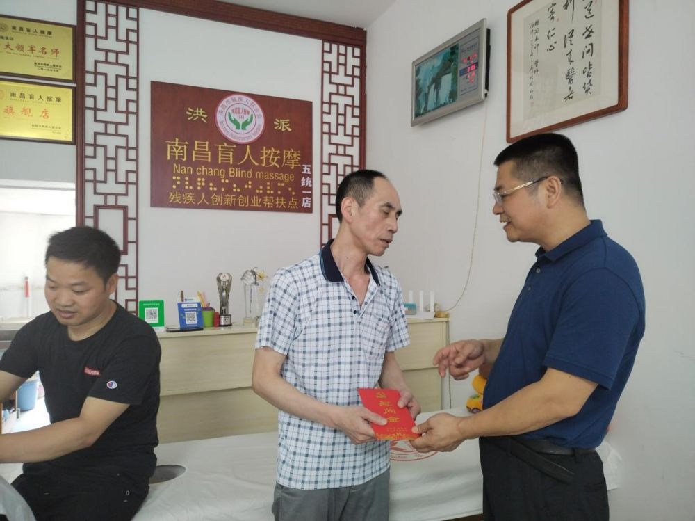 受新冠疫情持续影响,部分盲人按摩机构运营困难,盲人按摩人员的生活、就业等基本服务保障受到较大冲击。为积极落实好疫情防控期间盲人按摩机构纾困工作措施,切实稳定盲人就业、保障盲人按摩机构正常运转,6月23日下午,安义县残联党组书记、理事长张铭、副理事长陈小峰带队,对全县范围内困难按摩机构进行了走访慰问,为他们送去了党和政府的关爱。