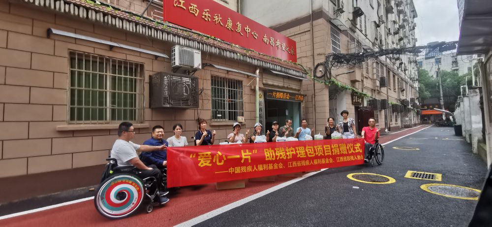 2022年6月21日,“爱心一片”助残护理包项目捐赠仪式在江西乐秋康复中心(南昌市脊髓损伤者希望之家)举行。江西省残疾人福利基金会常务副理事长兼法人盛斌、江西省残疾人福利基金会秘书长李明、江西省肢残人协会主席熊俊、南昌市肢残人协会主席王乐秋参加捐赠仪式,亲切看望了长年卧床的脊髓损伤者苏华并送上护理用品。约10名脊髓损伤者代表参加捐赠仪式。