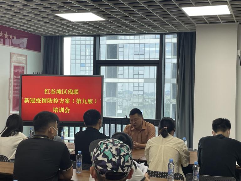 7月8日,红谷滩区残联召开新冠疫情防控方案(第九版)培训会议。区残联副理事长高勤主持会议,辖内各盲人按摩机构、康复机构相关人员参会。