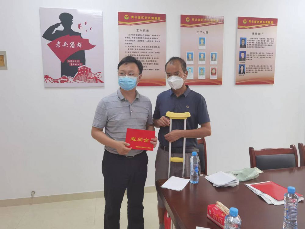 在"八一"建军节来临之际,为进一步关心关爱残疾退役军人生活,认真落实扶残助残政策,深入开展拥军优属活动,7月28下午,青云谱区残联党组书记、理事长程晟,前往青云谱区退役军人事务局走访残疾退役军人龚都宝。