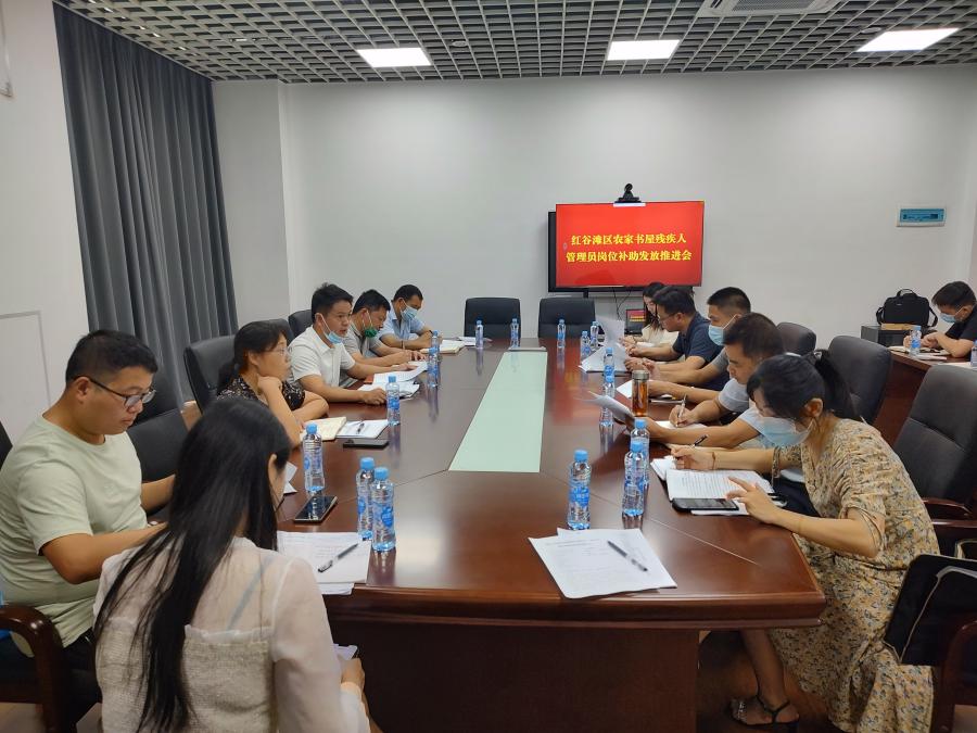 8月5日上午,在方大中心17楼会议室,红谷滩区召开农家书屋残疾人管理岗位补助发放推进会。区残联理事长贺学风主持会议,区文广新旅局、区人社局、生米街道、厚田乡、区残联分管领导及经办人参会。